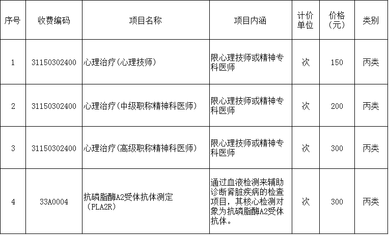 根据浙江省物价局、浙江省卫生厅、浙江省人力资源和社会保障厅《关于公布2012年新增医疗服务项目和完善医疗服务价格的通知》[2012]201号)浙江省物价局、浙江省卫生和计划生育委员会、浙江省人力资源和社会保障厅、《关于调整部分医疗服务项目及价格的通知》(浙价医[2015]137号)、浙医保联发[2021]21号文件精神,现将“心理治疗”等新增自主定价医疗服务项目及收费价格公示如下: 一、新增医疗服务项目及收费价格公示 二、上述新增医疗服务项目不纳入医保报销范围,由需方全额自费。 杭州市临安区中医院 2025年9月27日 来源: 作者:
